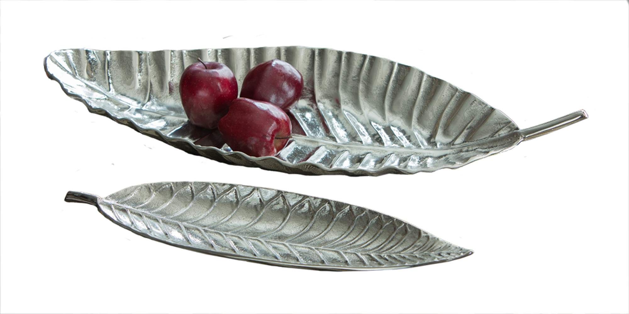 This beautiful Tropical Leaf Platter makes a lovely presentation when used as a dining or coffee table centerpiece to hold fruit, greens or decorative items. Measures 17 inches wide x 4.25 long x 2 inches high. Also available in larger size.
