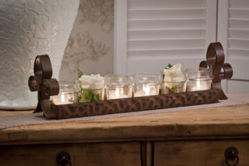 Bronze Iron Acanthus Leaf Hurricane with Hammered Globe