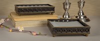 Frosted Nickle Slotted Gold Trimmed Napkin Tray
