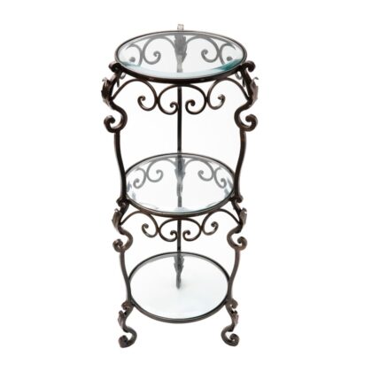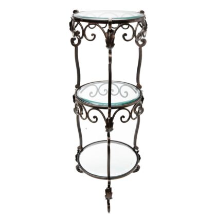 3 Tier Bronze Iron Acanthus Leaf Table with Beveled Glass