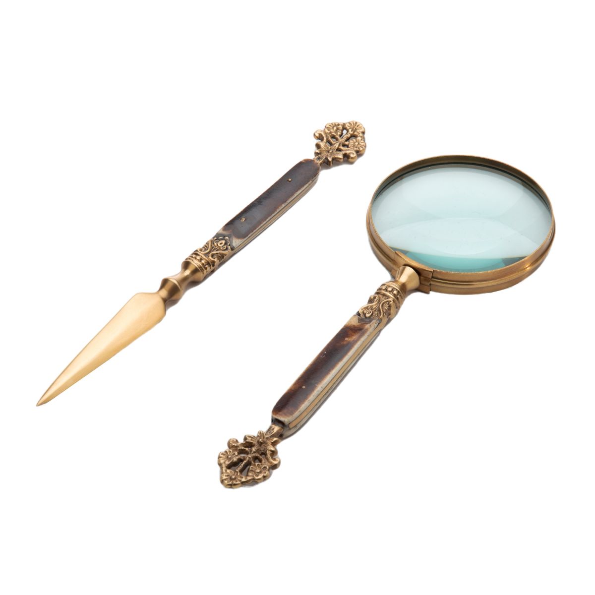 Antique Brass and Bone Magnifying Glass and Letter Opener