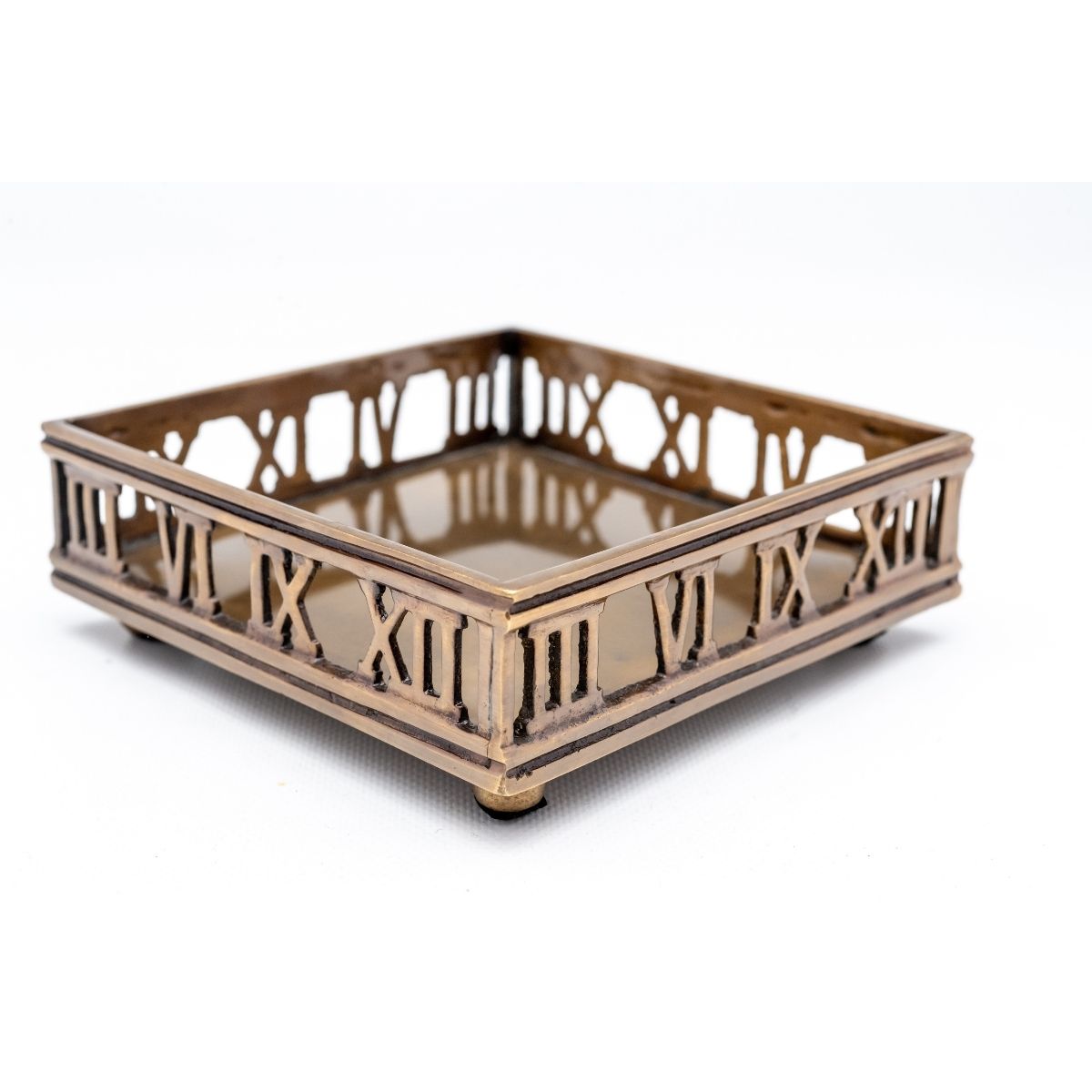 This attractive Antique Brass Roman Numeral Cocktail Napkin Holder will add a beautiful detail to your bar or table while keeping napkins within easy reach for you and your guests. Also available in antique silver finish and lunch napkin size. Measures 5.75 inches long x 5.75 inches wide x 2 inches high.