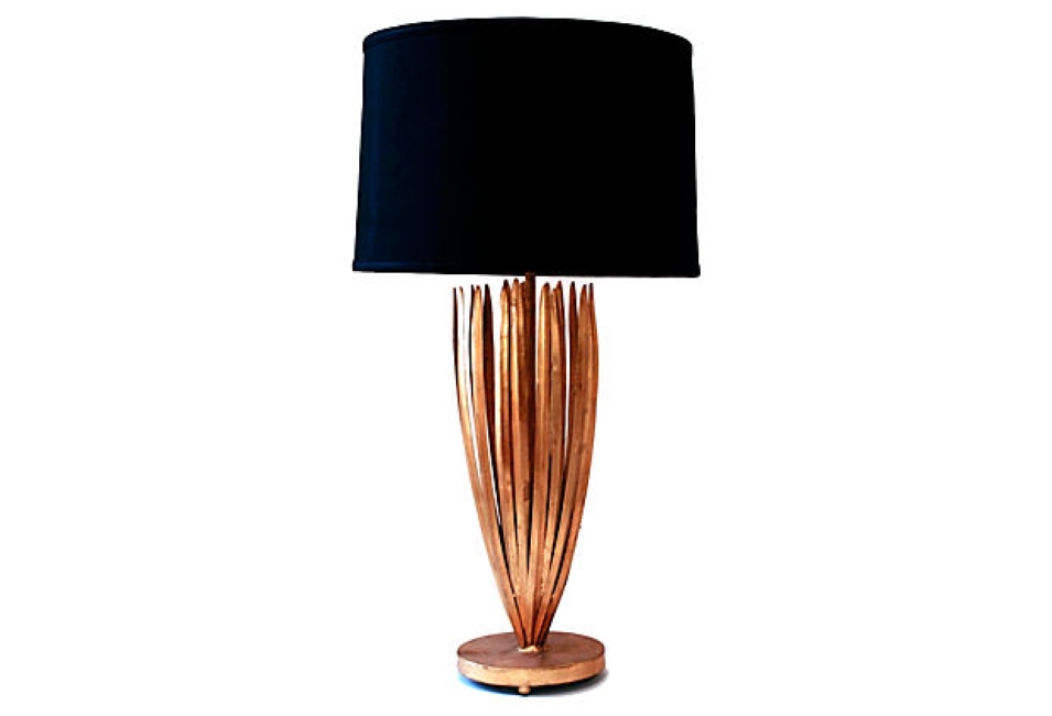 Introducing the exquisite Antique Gold Reed Lamp with Black Shade, a stunning addition to any room. Illuminate your space with this nature-inspired beauty. Featuring a 2-way bulb with a maximum of 100 watts, and measuring 18 inches in diameter x 35 inches in height.