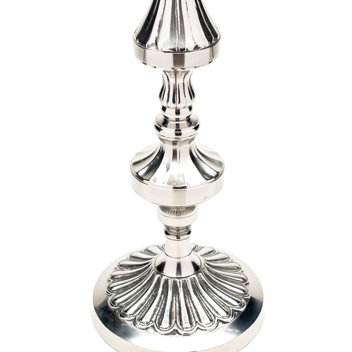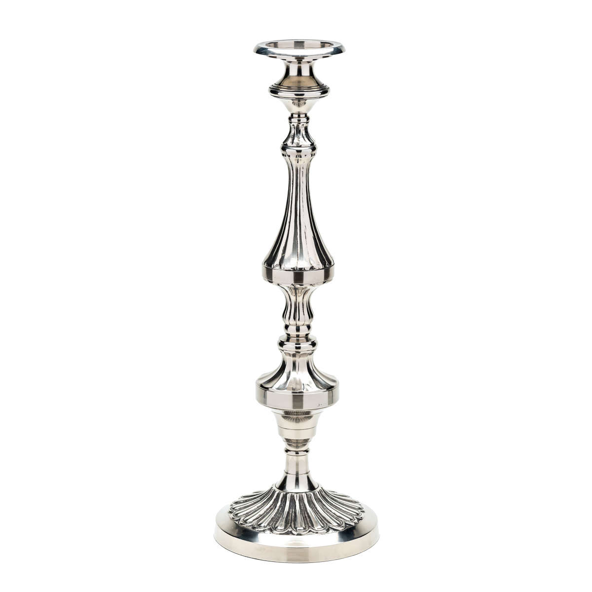 Add a gracious design element to your decor with this beautiful Antique Silver Fluted Candleholder. Its graceful style lends an elegant look to a dinner table, buffet or side table. Holds a taper candle. Candle not included. Measures 23 inches high x 8 inches in diameter.