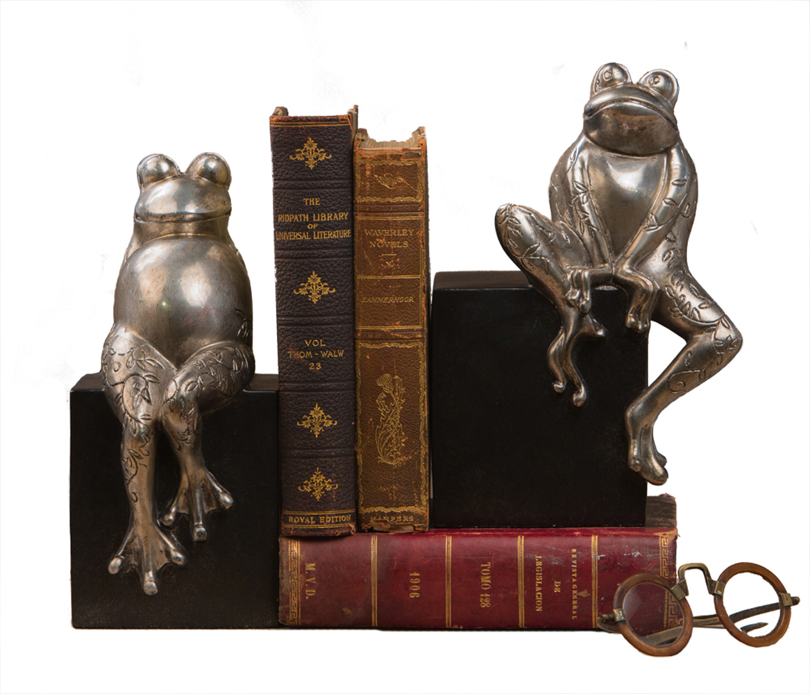 Antique Silver Frogs on Black Base