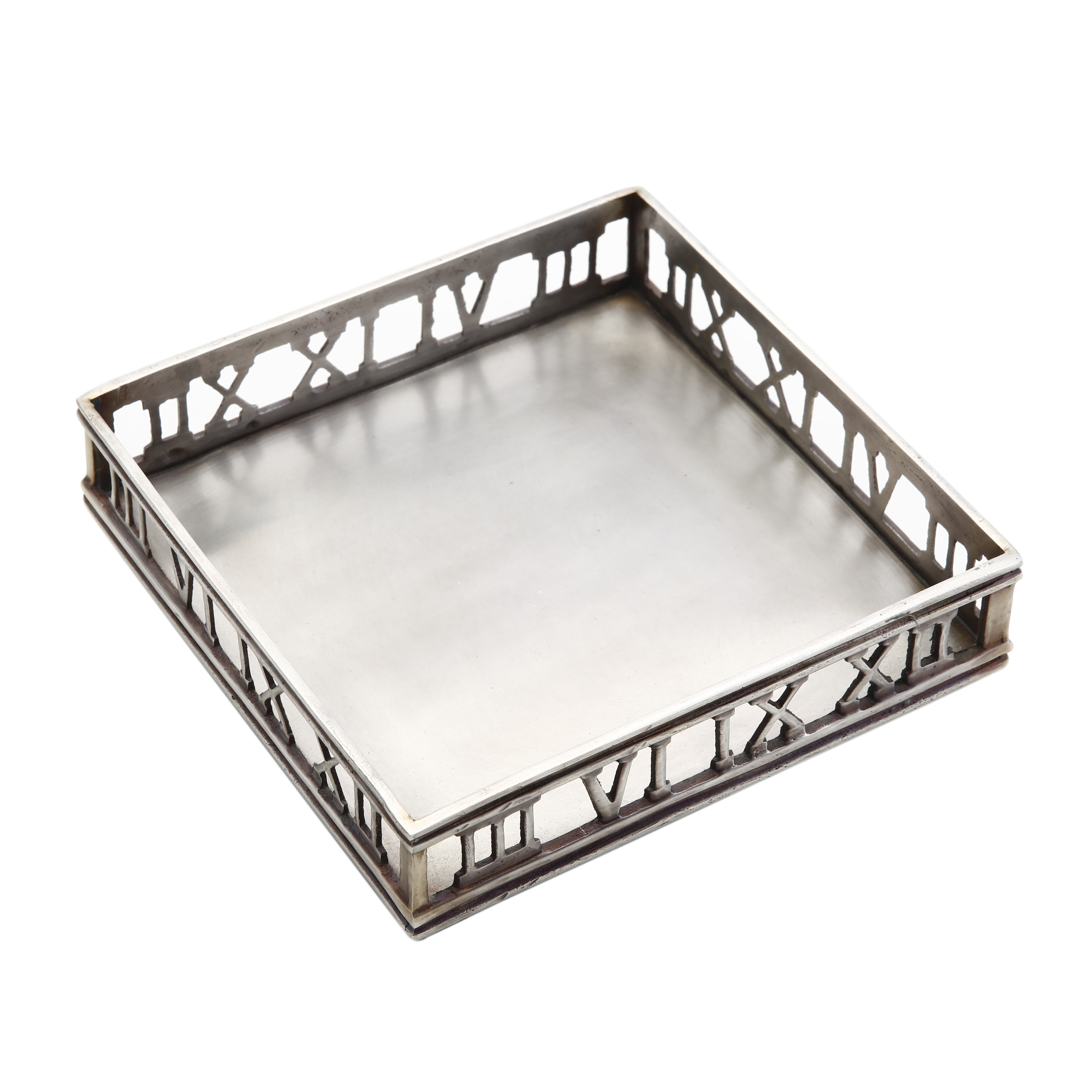 This attractive Antique Silver finish Roman Numeral Lunch Napkin Holder will add a beautiful detail to your table while keeping napkins within easy reach for you and your guests. Also available in cocktail napkin size. Measures 6.75 inches long x 6.75 inches wide x 2 inches high.