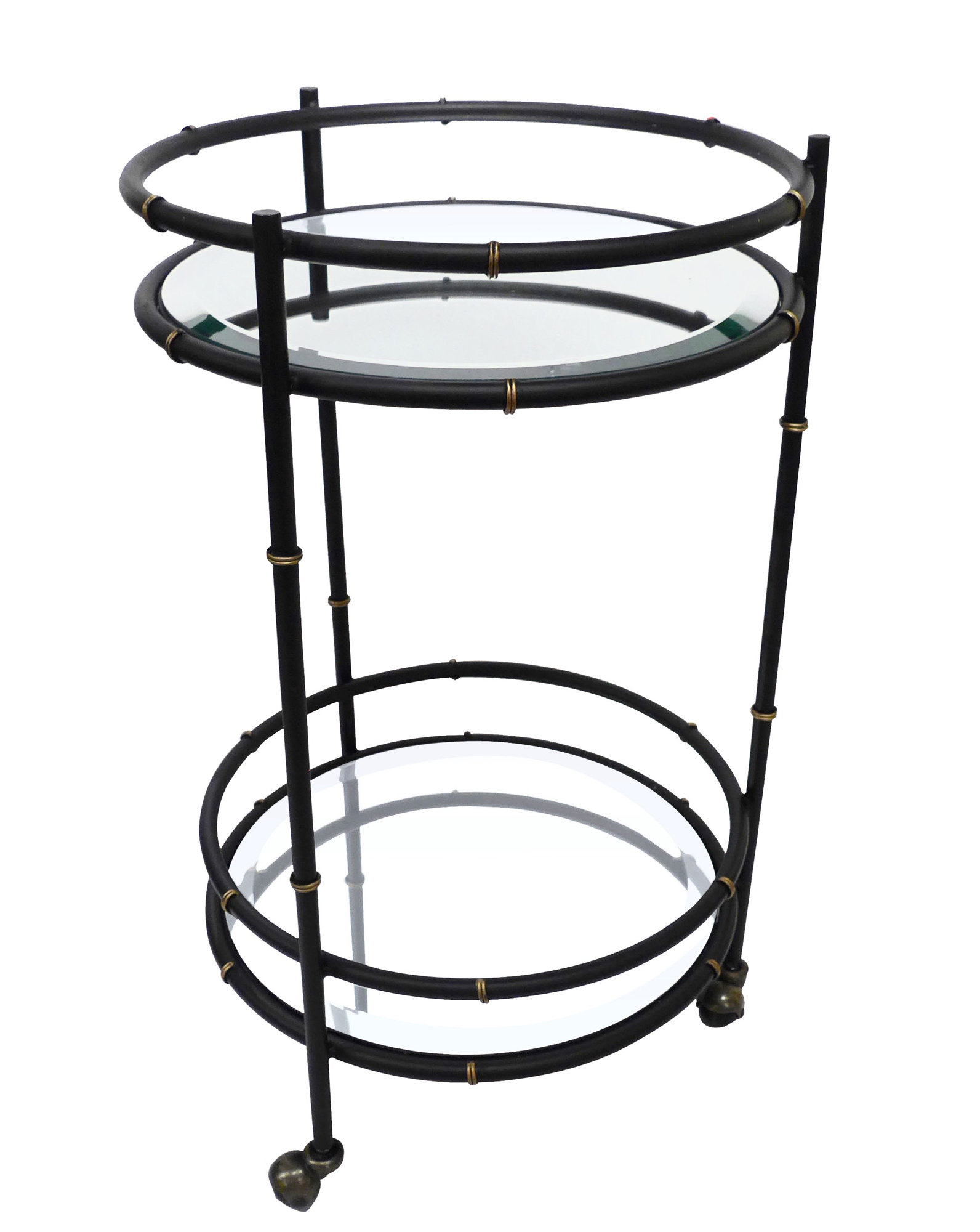 Be the perfect host with this Asian-inspired Black and Gold Bamboo Round Beverage Cart. Both decorative and functional, this beautiful cart will hold bottles and barware in gracious style. Features smooth caster wheels so you can easily bring the party to your guests, and two lovely beveled glass shelves with rails to keep everything secure. Measures 30.5 inches high x 18.5 inches in diameter.