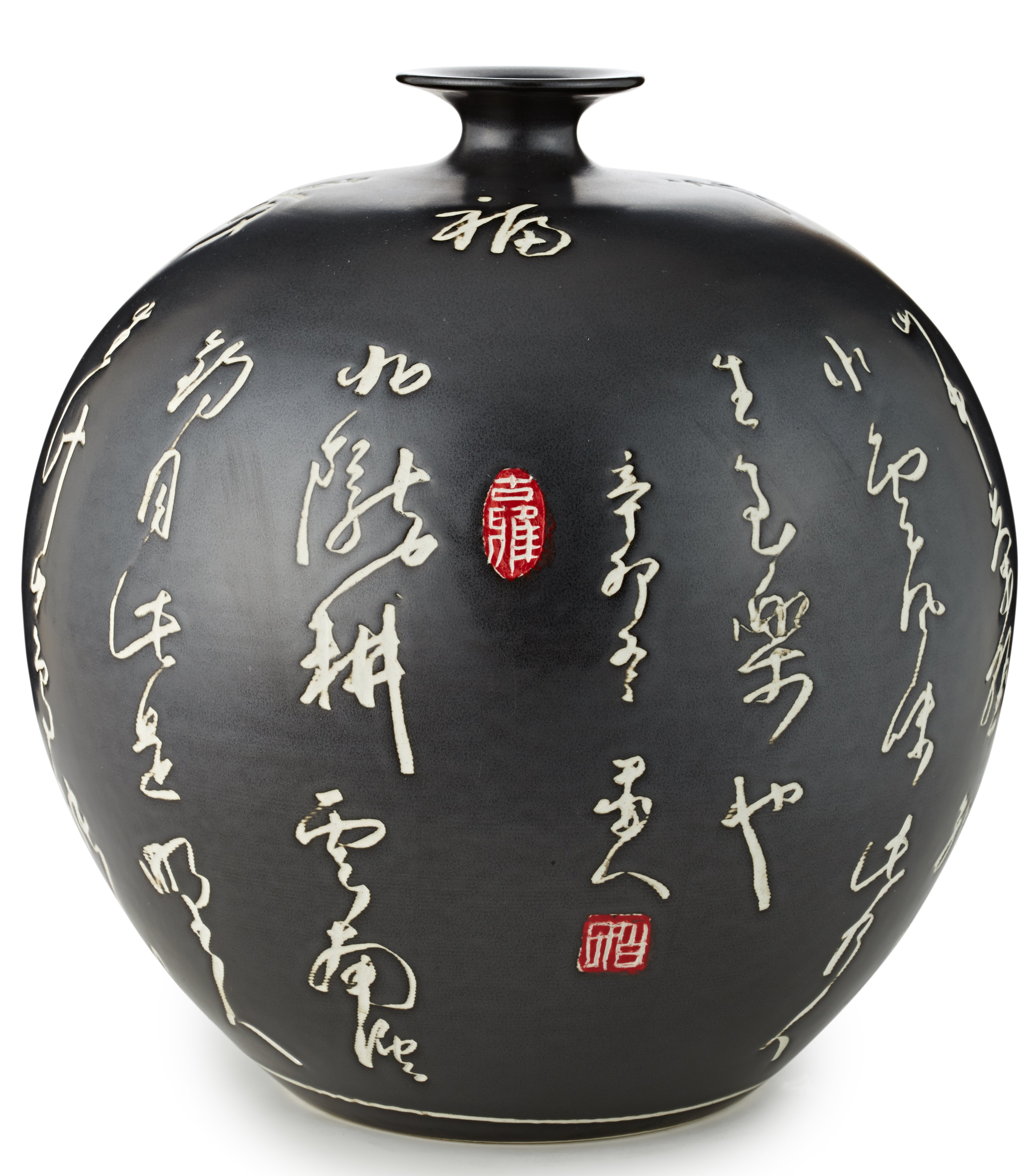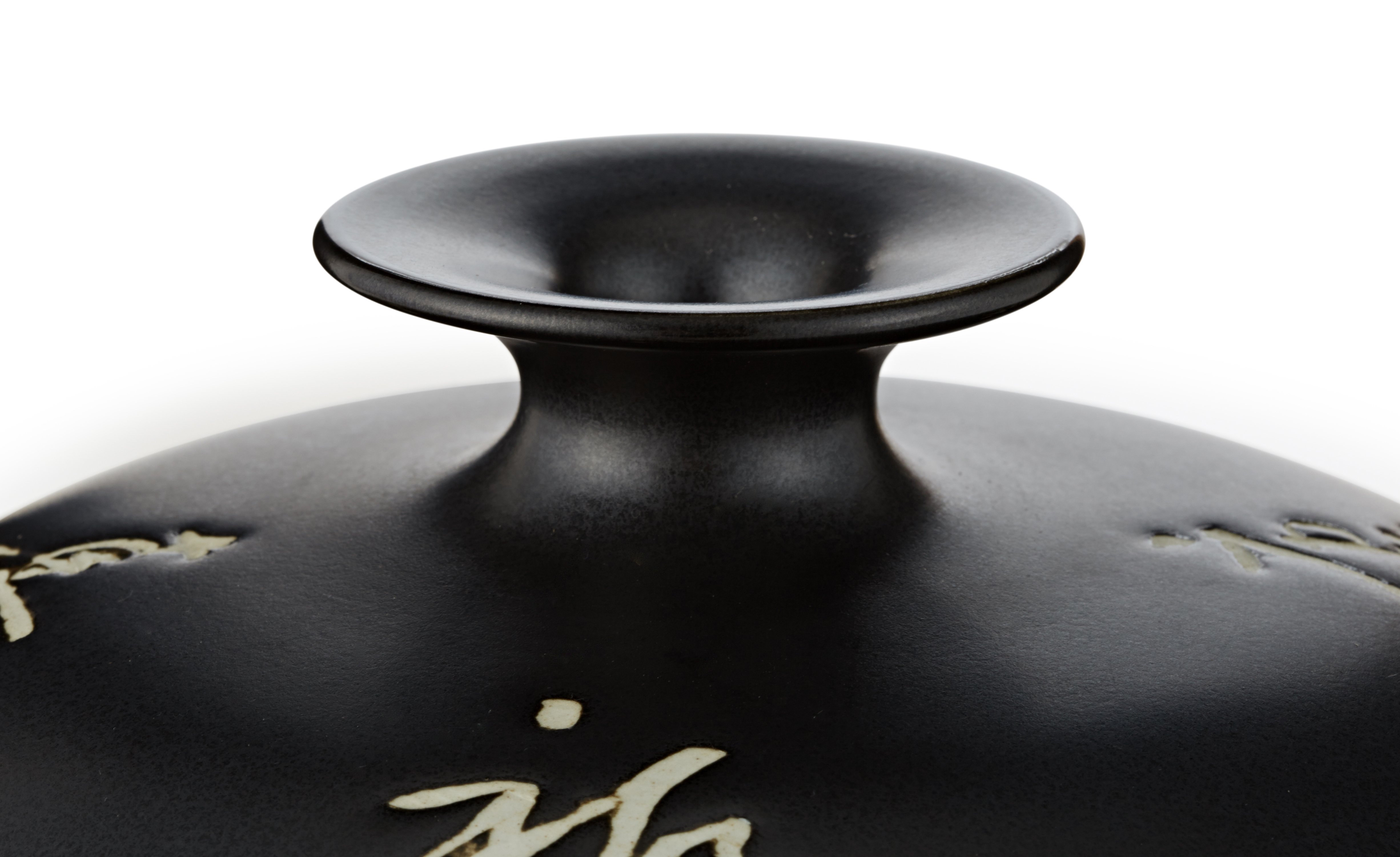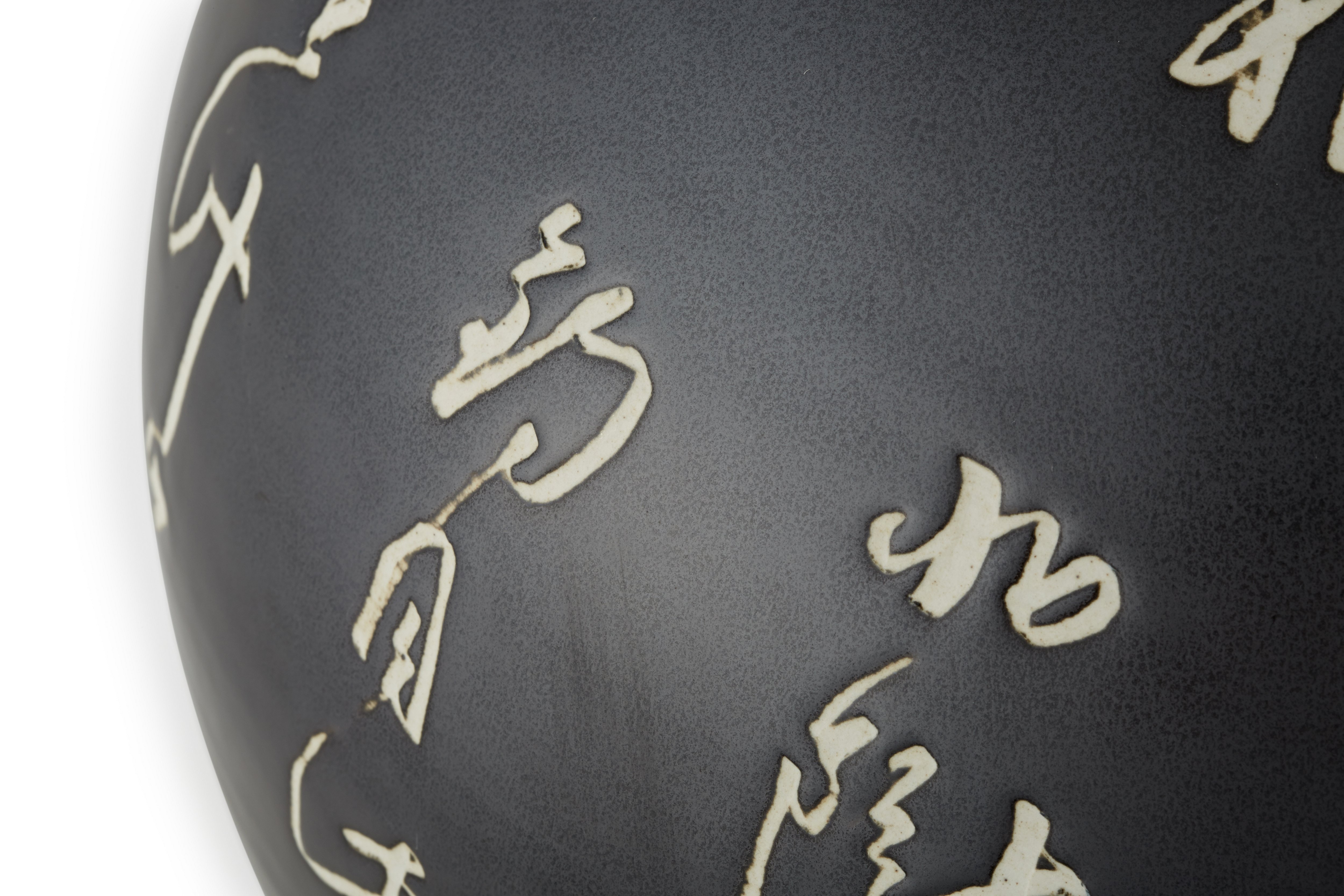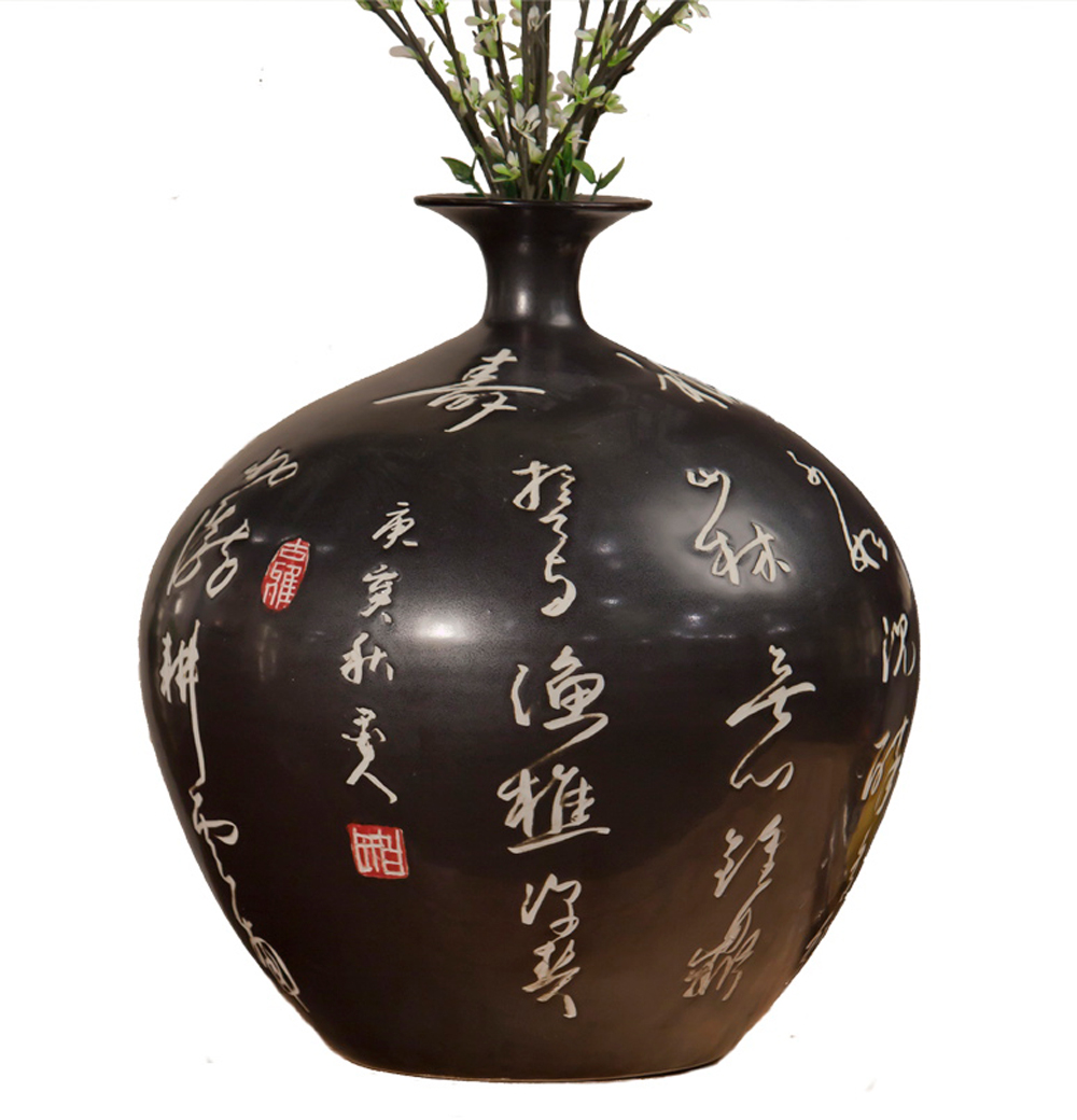 This beautiful, round-shaped porcelain Black Caligraphy Ball Vase will create a dramatic, eye-catching presentation whether holding dried flowers or displayed empty on a table, hearth, or anywhere you want to add a fabulous design element to your home. Measures 12 inches in diameter x 14 inches high.