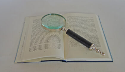 Bring a bit of elegance to your desk with this Black Crock Embossed Silver Magnifying Glass. It adds a handsome and useful decorative element to any office. Use with the matching tissue box to complete the look. Makes a great gift. Measures 11 inches long x 4 inches wide x 1.25 inches high.