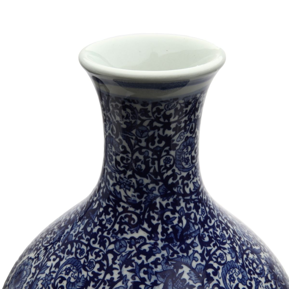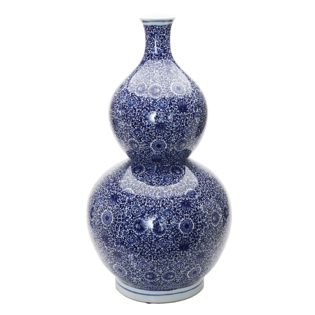 This beautiful, shapely tall porcelain Blue and White Gourd Vase will create a dramatic, eye-catching presentation whether holding flowers or displayed empty near a front entrance, fireplace, or anywhere you want to add a fabulous design element to your home. Measures 12.5 inches in diameter x 24.5 inches high.