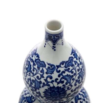 This beautiful, shapely porcelain Blue and White Gourd Vase will create a dramatic, eye-catching presentation whether holding flowers or displayed empty on a table, near a front entrance, fireplace, or anywhere you want to add a fabulous design element to your home. Measures 5.5 inches in diameter x 11 inches high.