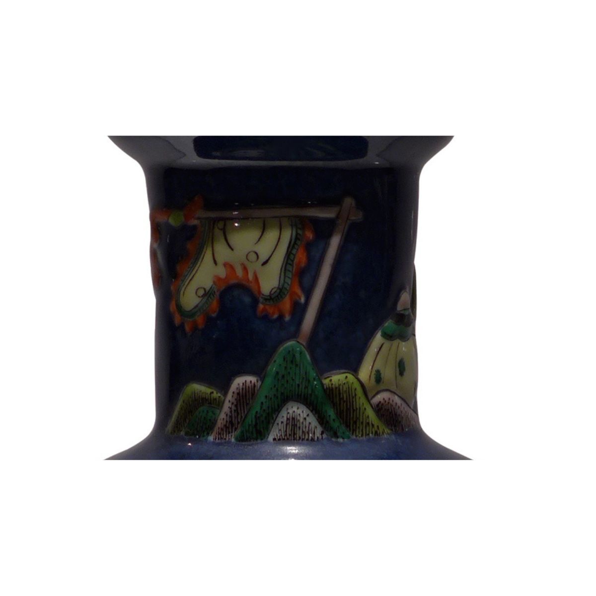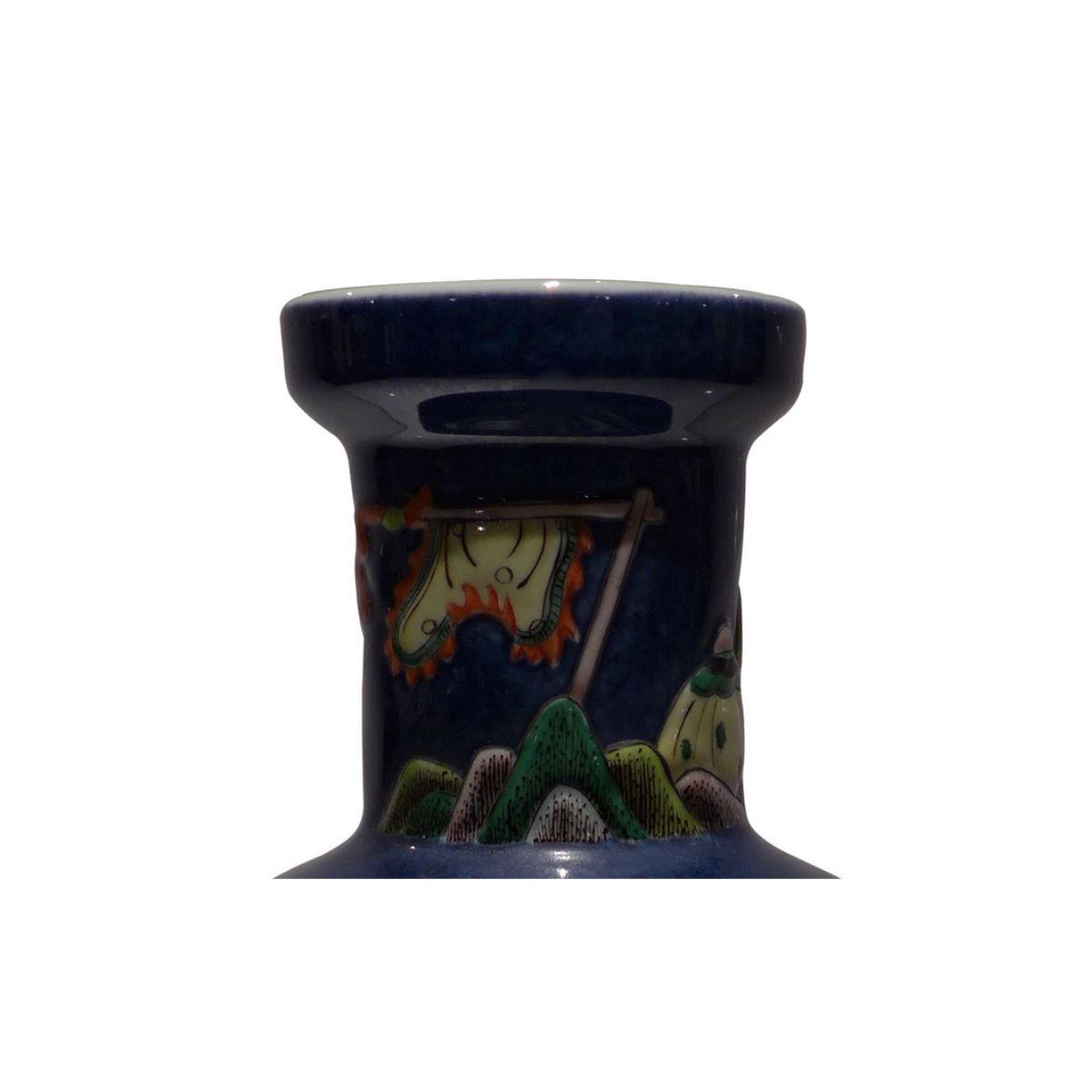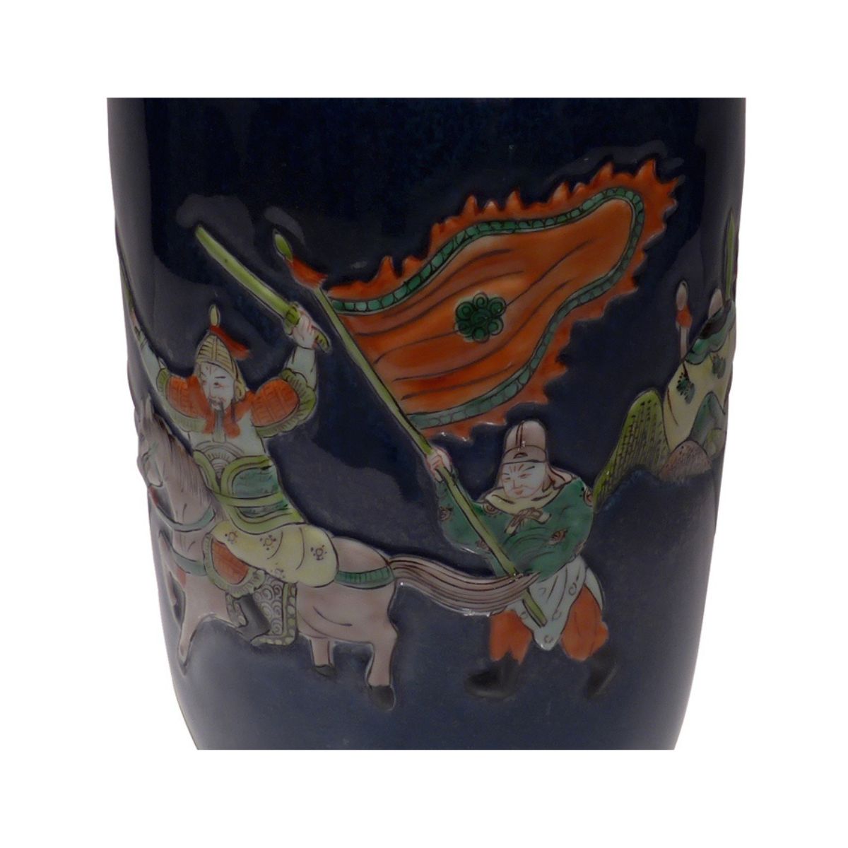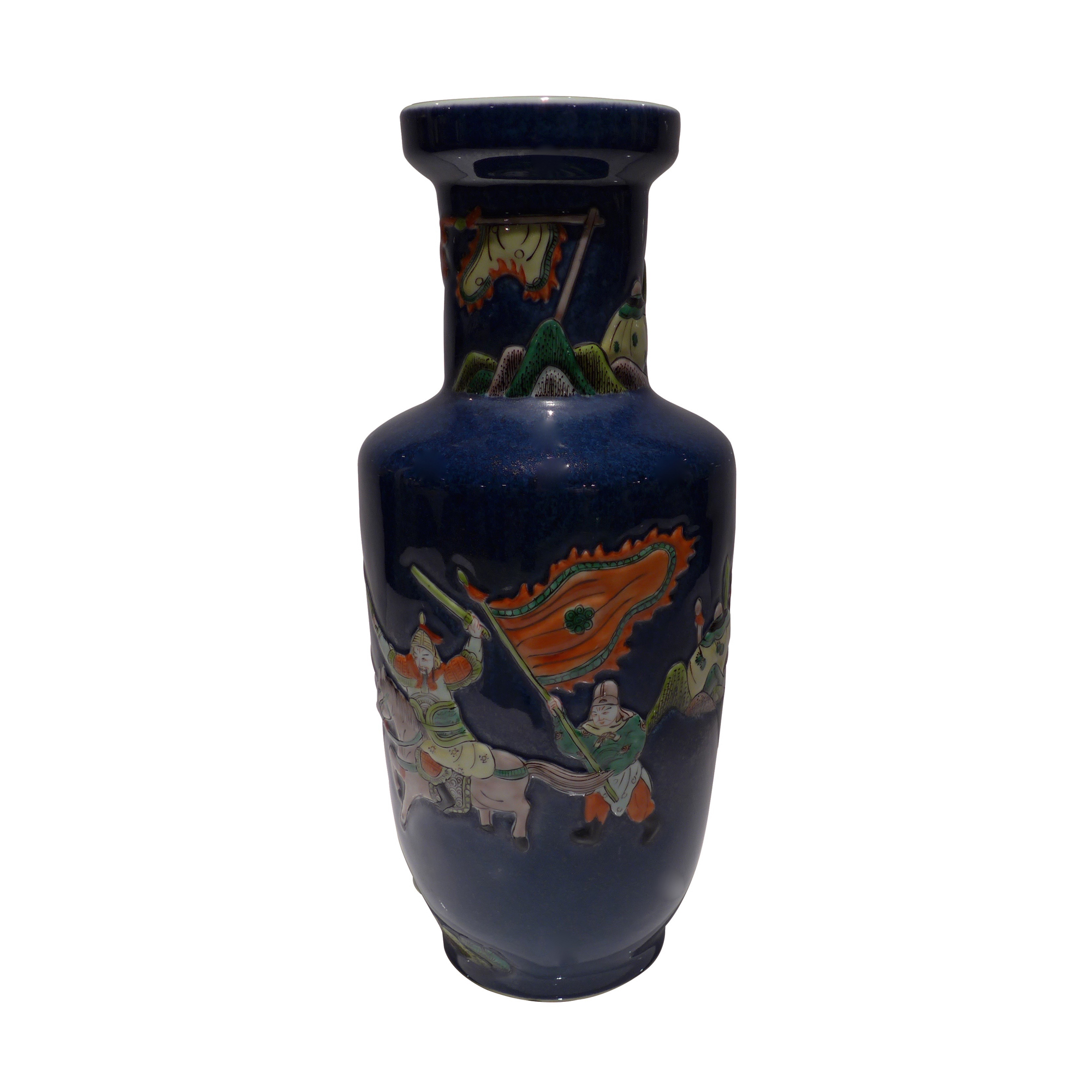 This striking porcelain Blue "Warrior" Vase will make an impressive presentation filled with flowers or displayed empty on a table, near a front entrance, fireplace, or anywhere you want to add a dramatic decorative element. Measures 7.5 inches in diameter x 15 inches high.