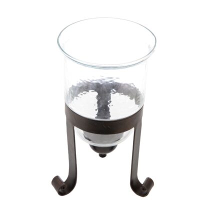 Illuminate your decor with this beautiful Bronze Tripod Hurricane. Looks fabulous anywhere you would like to add an impressive design element. Holds a 3-inch pillar candle. Candle not included. Measures 7 inches in diameter x 12.75 inches high.
