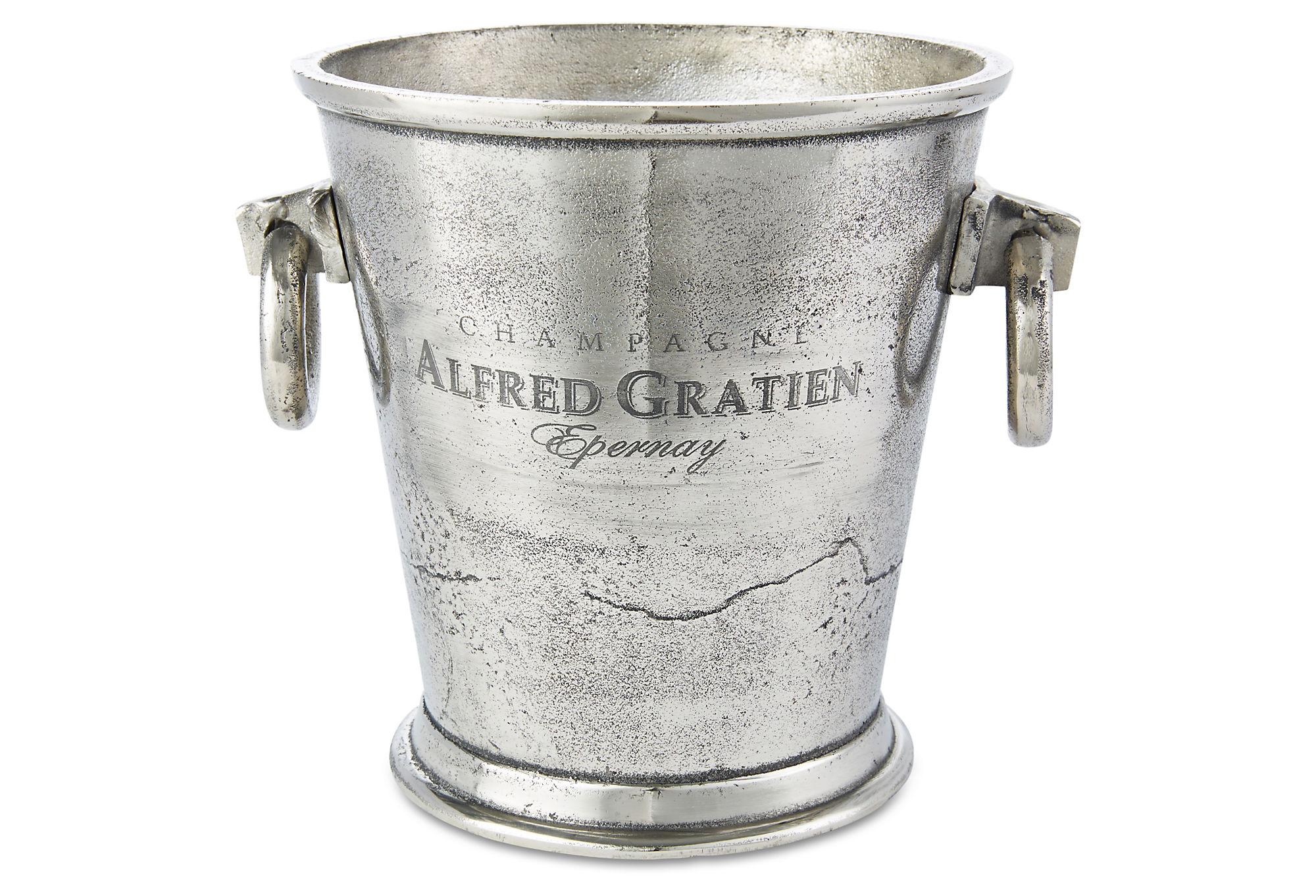 Reminiscent of the opulent silver once used in stately homes, you can serve your guests in style with this elegant Cast Aluminum Wine Cooler. Measures: 10.75 inches x 9.25 inches x 9.5 inches high.n