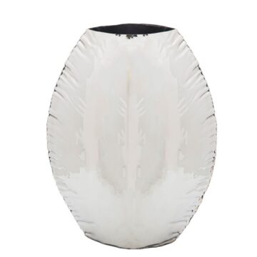 Exuding an air of modern elegance, this beautiful crumpled edge oval vase makes a dramatic, eye-catching presentation on a table or sideboard filled with flowers, and is also fabulous displayed empty as a work of art. Measures 16.5 inches high x 12.5 inches wide x 5.5 inches deep.