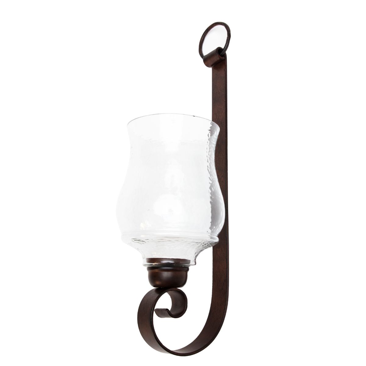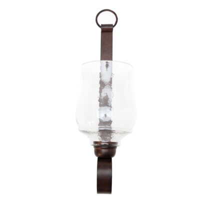 Illuminate your decor with this beautiful Dark Bronze Iron Loop Sconce. With its hammered globe and graceful curves, this lovely sconce will look great anywhere you want to add an eye-catching decorative element. Measures 9 inches wide x 9 inches long x 29 inches high overall. Globe measures 8 inches in diameter x 11 inches high. Holds a 3" pillar candle.
