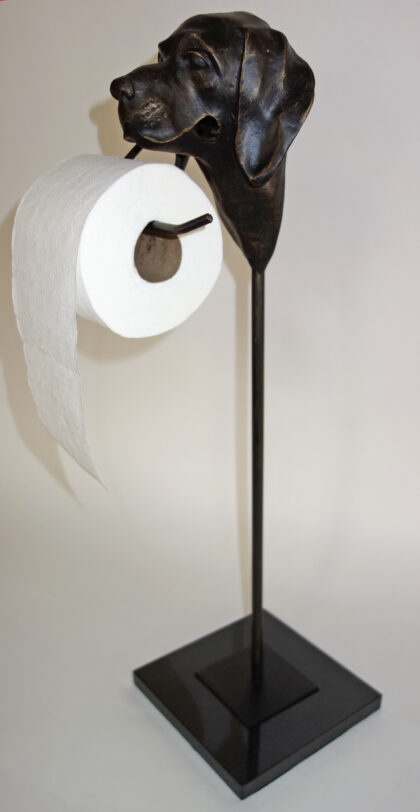 This sturdy pup is serious about fetching your paper when you need it and keeping it close at hand. Both decorative and useful, it makes a great addition to your bath or powder room. Measures 28 inches high x 8 inches wide x 8 inches deep.