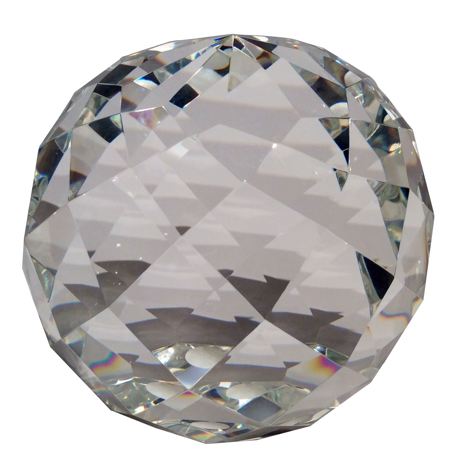 This beautiful faceted crystal sphere makes a striking decorative accent. The facets will capture and brilliantly reflect the ambient light in your home. Place on a bookshelf, curio or table, and show your knack for style. Measures: 6 inches round.