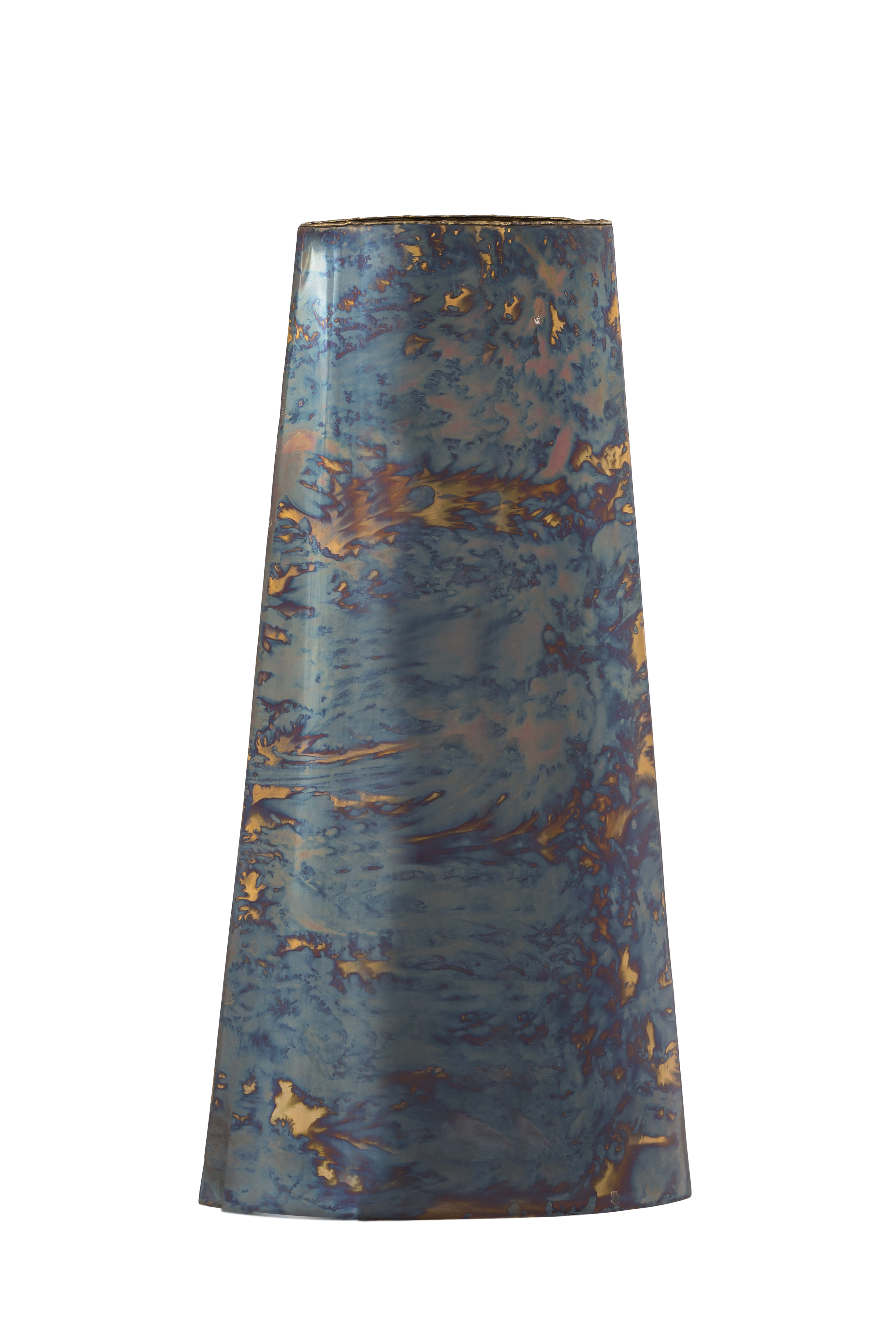 Add a modern artful flair to your home with this strikingly beautiful Flamed Vase with Gold Trim. Creates a dramatic, eye-catching presentation on an entry or side table when filled with flowers, and is also fabulous displayed empty as a work of art.
