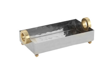 This lovely Gold Ring Lunch Napkin Tray will add a beautiful detail to your table or countertop while keeping napkins within easy reach. Measures 8 inches wide x 7 inches deep x 3 inches high.