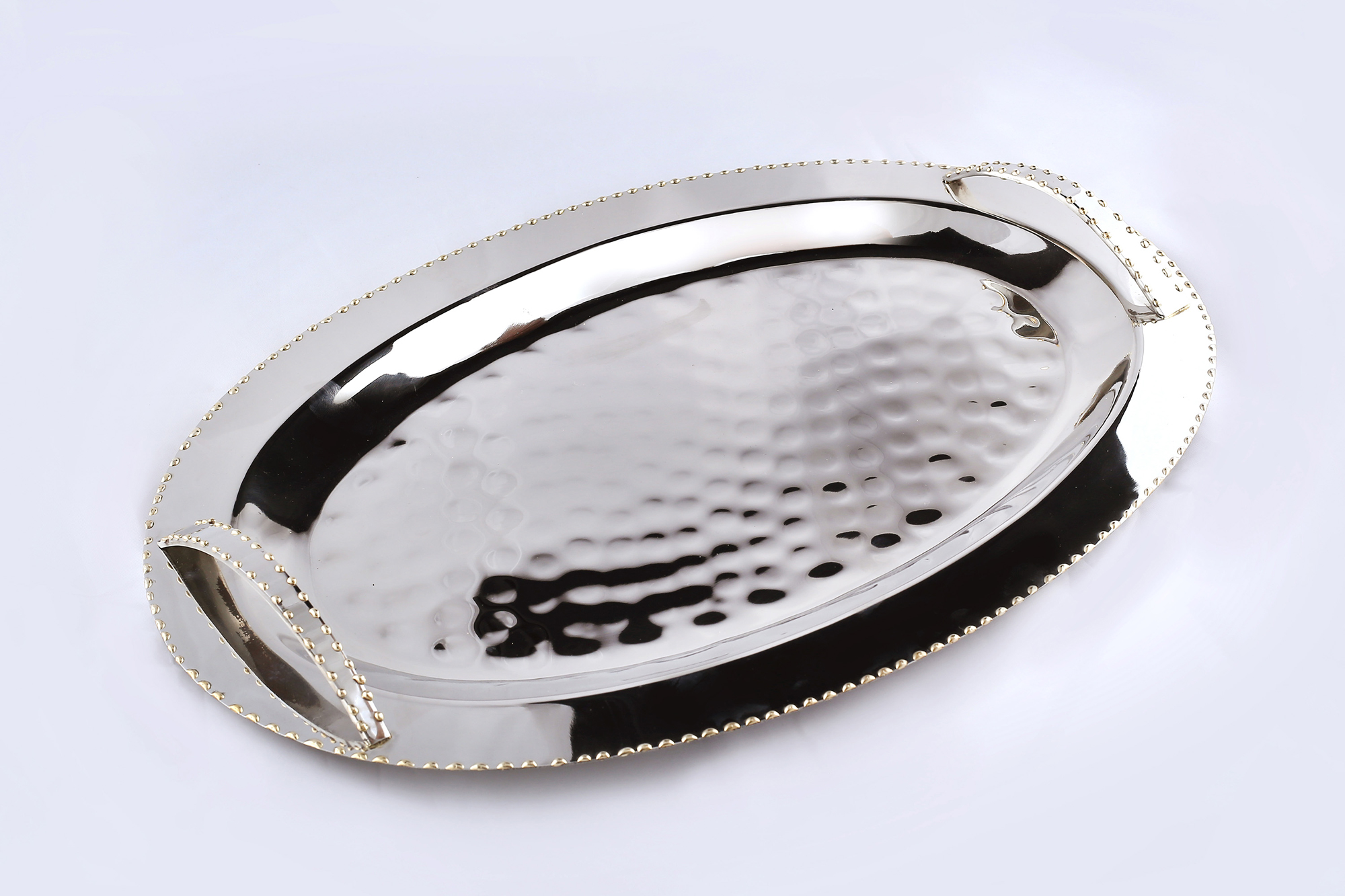 This lovely Beaded Oval Tray lends an understated elegance to any occasion, whether used on a sideboard or for serving canapes to your guests. Its beautiful design works with any decor style. Measures 18 inches long x 12.5 inches wide x 2 inches high.
