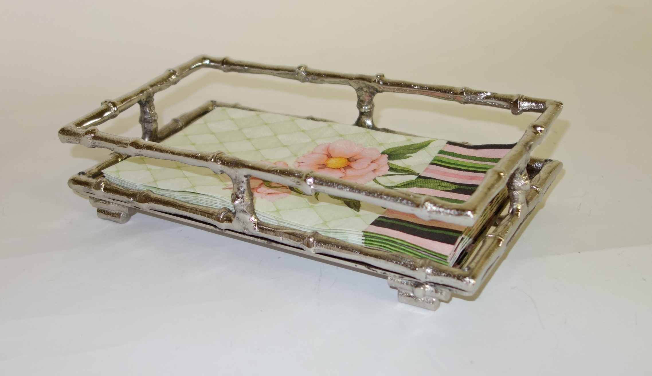 This Nickel Finish Bamboo Guest Towel Holder will add an elegant detail to a bath or powder room with its lovely Asian-inspired design. Keeps towels close at hand for your guests' convenience. Measures: 9.25 inches x 5.25 inches x 1.75 inches.