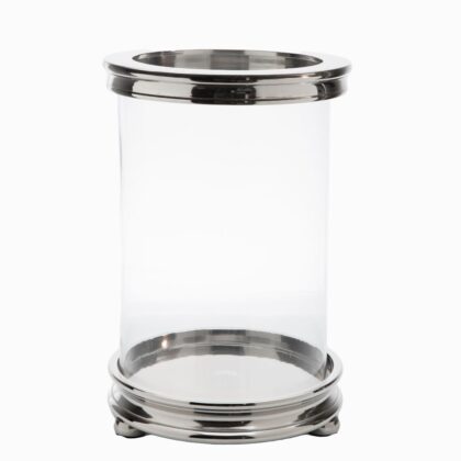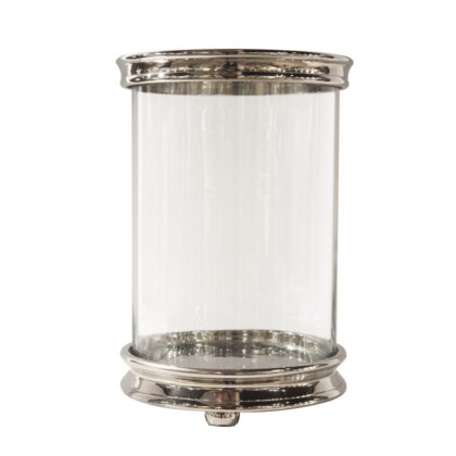 Create a warm, inviting atmosphere in your home with the classic style of this lovely hurricane candleholder. Finished in a nickel color, it looks fabulous on a mantelpiece, buffet or table. Holds a 6" pillar candle (candle not included).