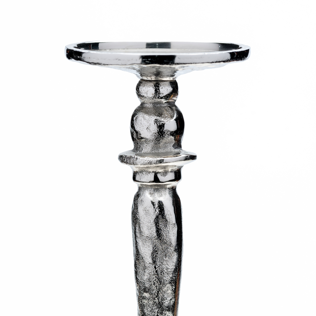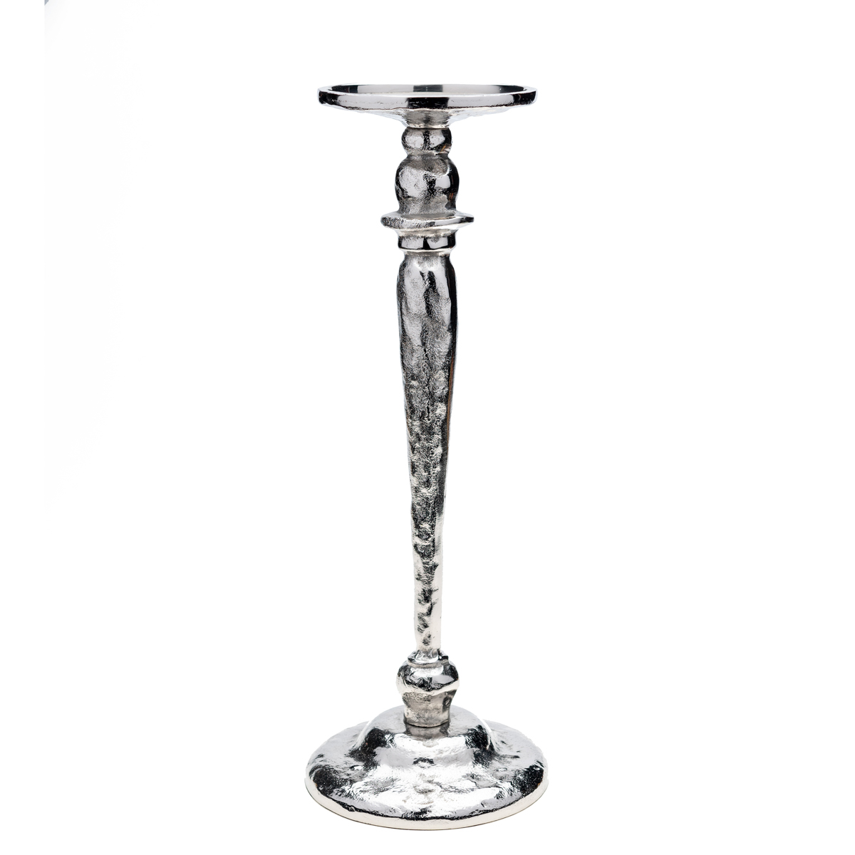 Illuminate your decor with this beautiful Nickel Hammered Pillar Candleholder. Its graceful style lends an elegant look to a dinner table, buffet or side table. Holds a 3-inch pillar candle. Candle not included. Measures 5 inches in diameter x 15.5 inches high.
