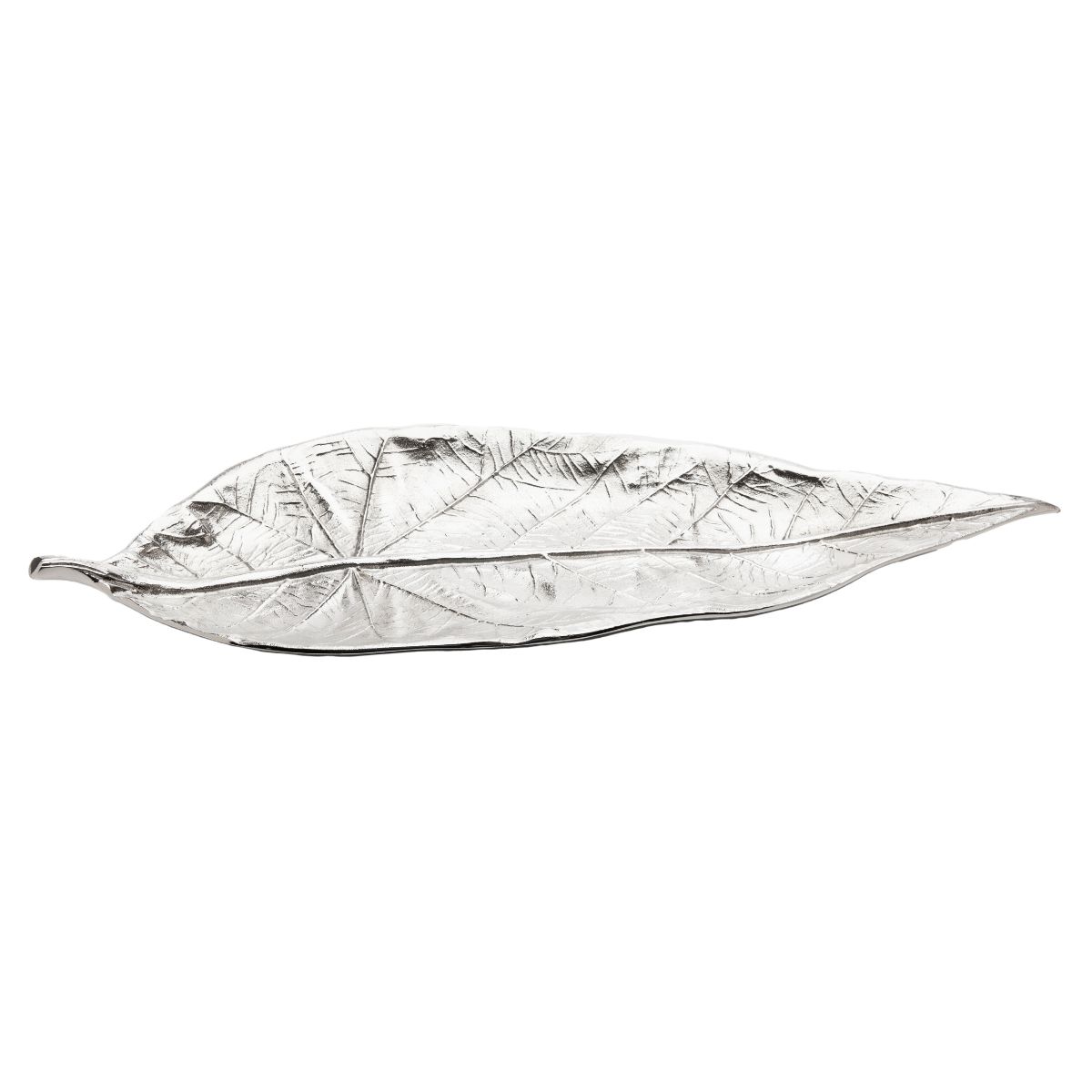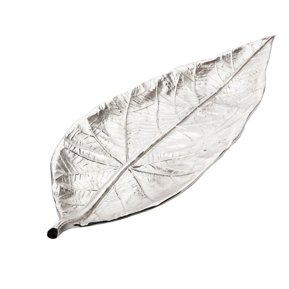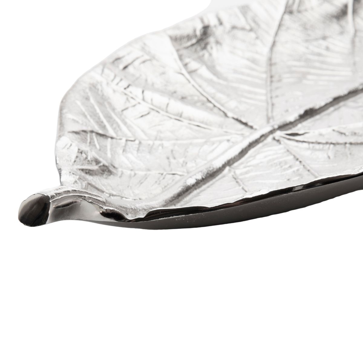 This beautiful Nickel color Leaf Tray looks lovely holding fruit or decorative items as a dining table centerpiece, or placed on a buffet, coffee table or kitchen countertop. Measures 25 inches wide x 8.75 long x 2 inches high.