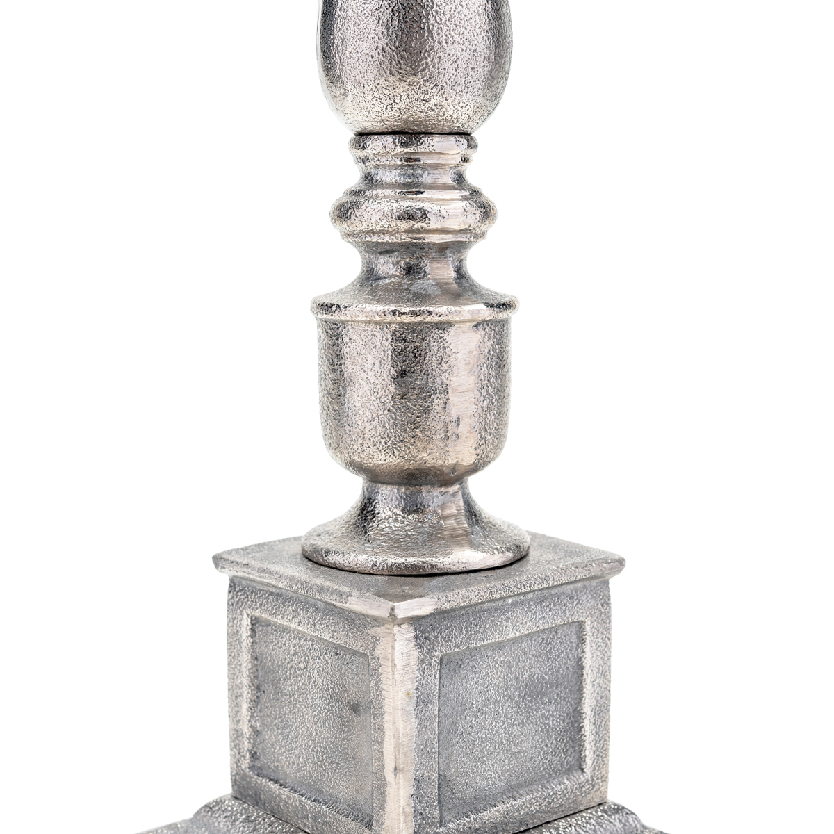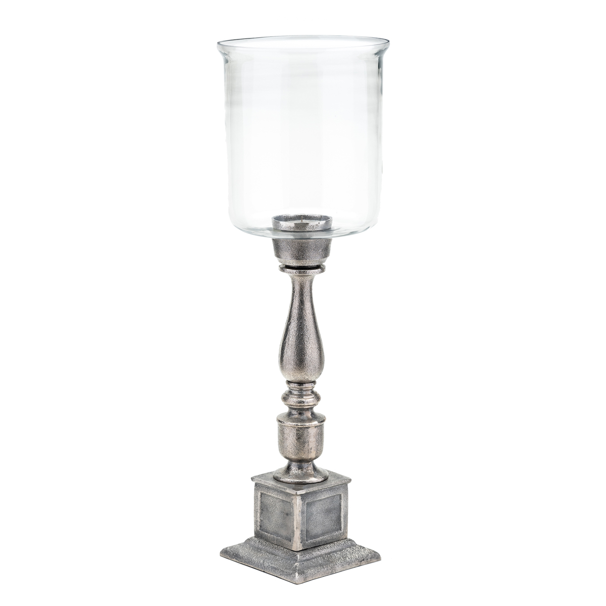 Illuminate your decor with this beautiful Nickel Rough Cast Hurricane. Looks fabulous anywhere you would like to add an impressive design element. Holds a 3-inch pillar candle. Candle not included. Measures 9.5 inches wide x 9.5 inches long x 30.5 inches high.
