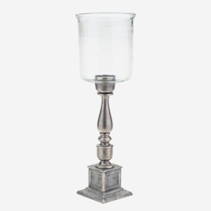 Illuminate your decor with this beautiful Nickel Rough Cast Hurricane. Looks fabulous anywhere you would like to add an impressive design element. Holds a 3-inch pillar candle. Candle not included. Measures 9.5 inches wide x 9.5 inches long x 30.5 inches high.
