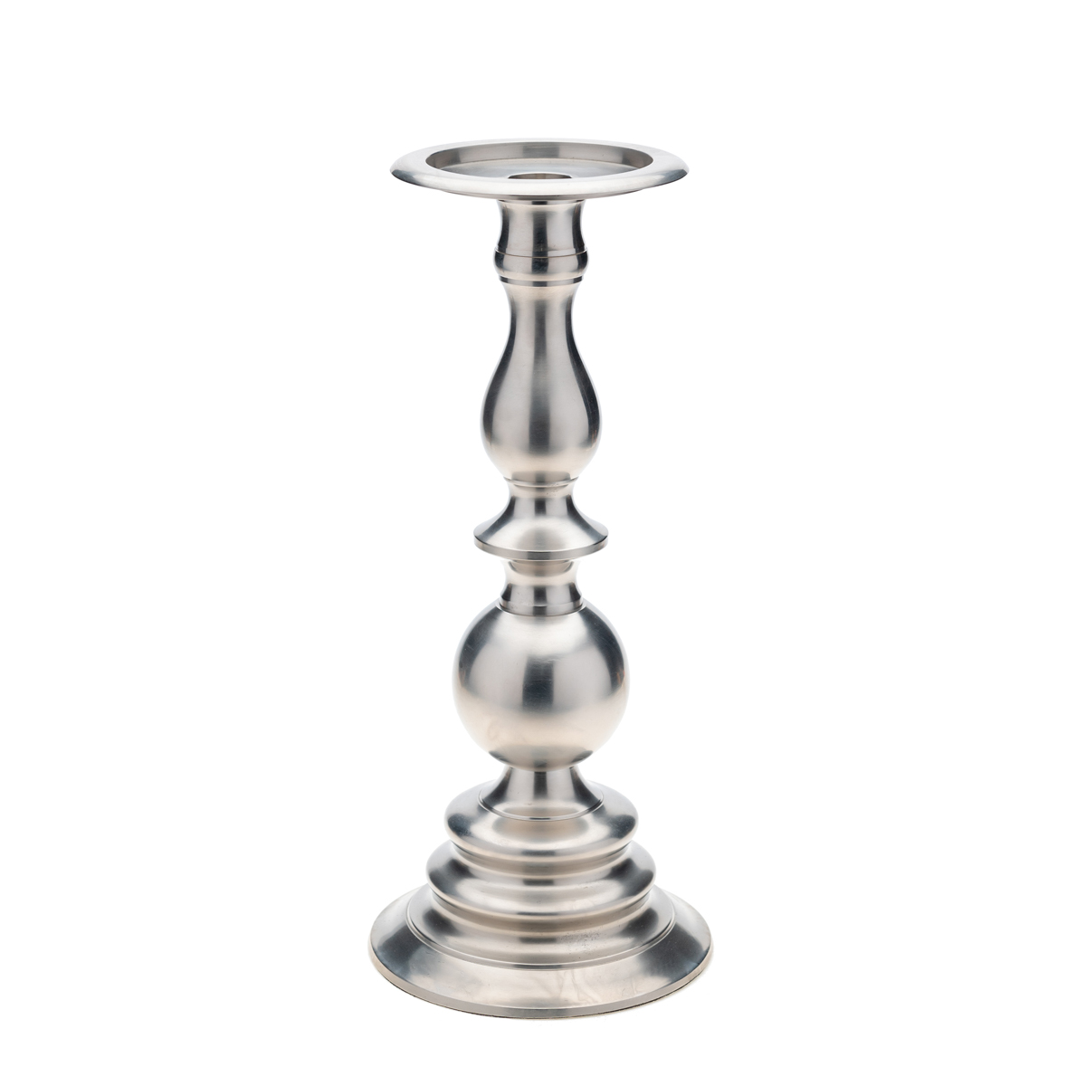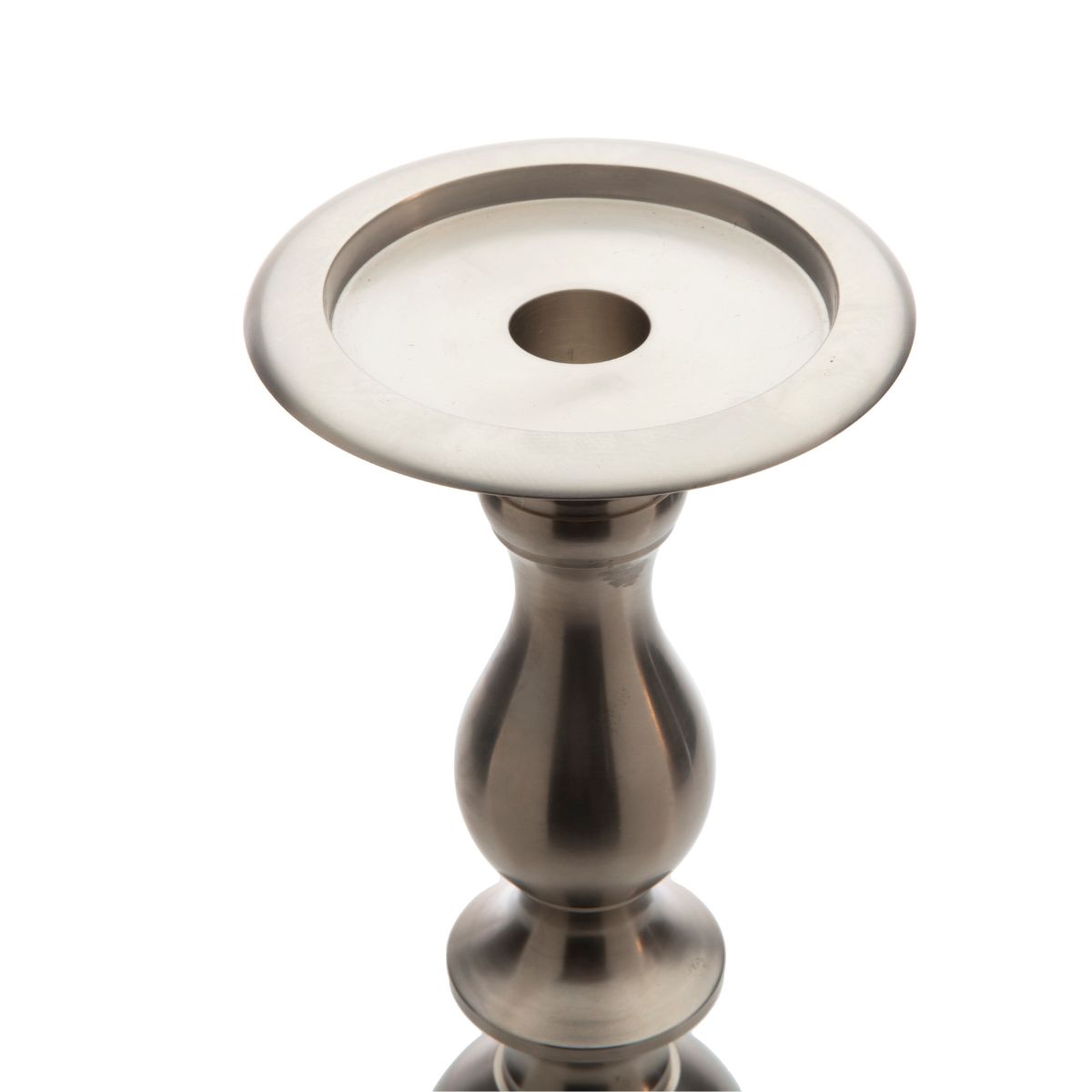 Add a lovely design element to your decor with this beautiful Pewter Finish Pillar Candleholder. Its classic style lends an elegant look to a dinner table, buffet or sideboard. Holds either a taper or 3-inch pillar candle (not included). Measures 5.25 inches wide x 5.25 inches deep by 12.25 inches high. Sold individually.