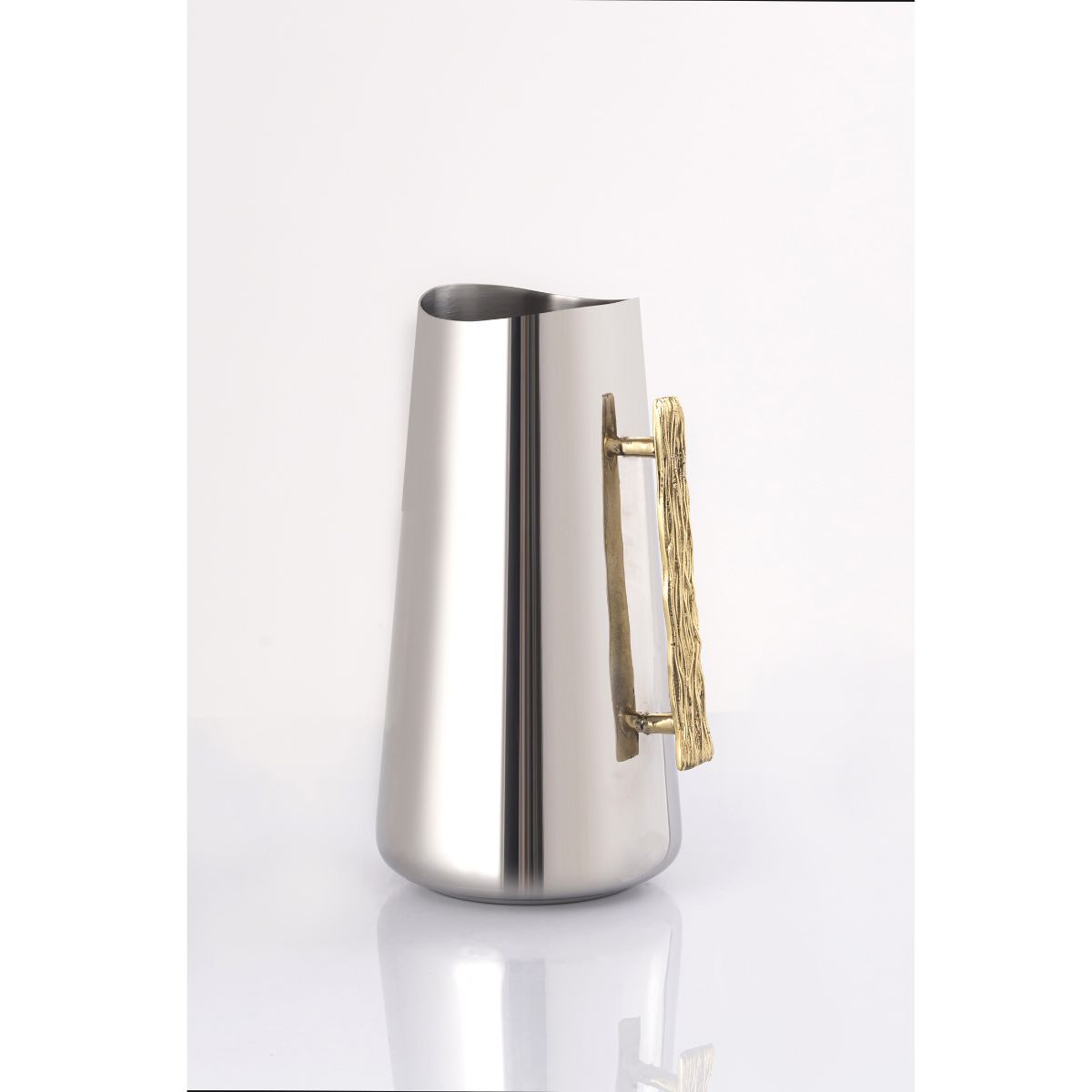 Beautiful stainless steel pitcher with gold wire handle looks lovely on a bar, table, or countertop. This eye-catching piece is perfect for serving your guests.