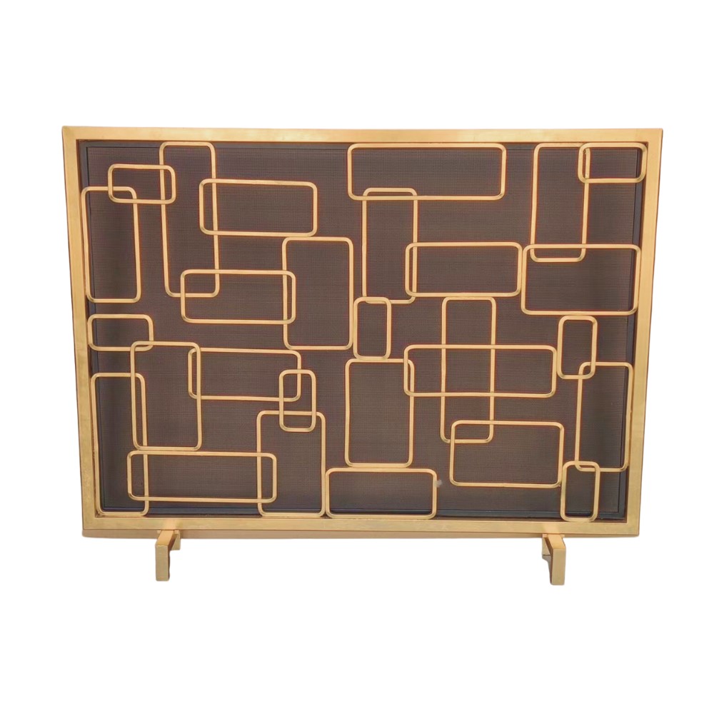 Rectangles Firescreen With Mesh Antique Gold Finish