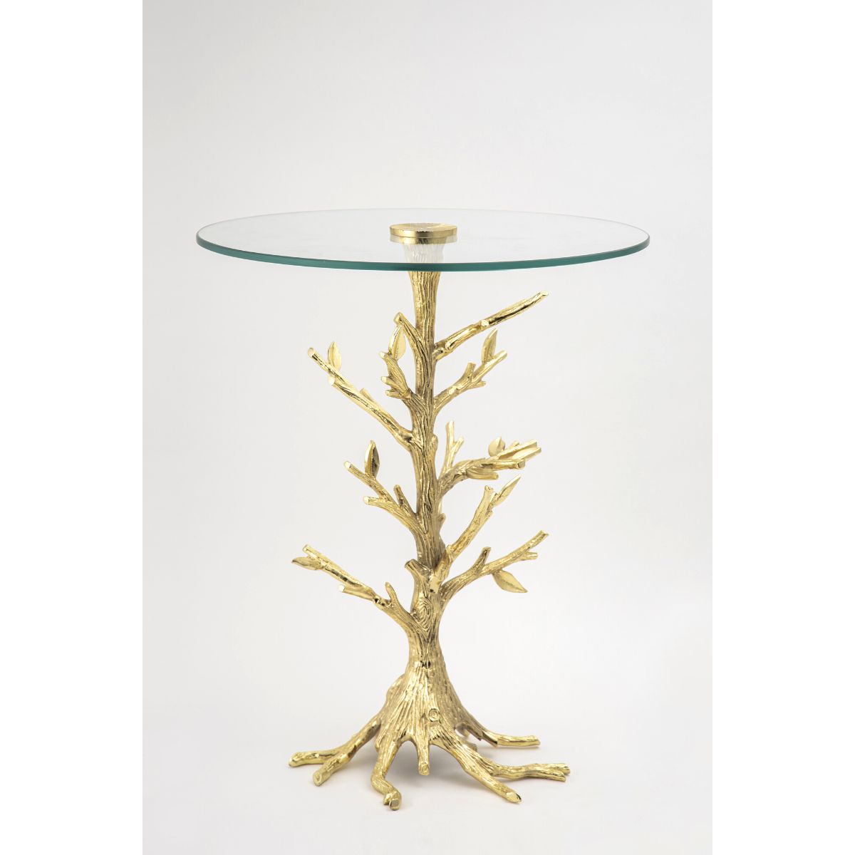 Both decorative and functional, this beautiful Rose Tree Table with Glass Top will add an elegant accent to your home. A perfect place to show off a beautiful flower-filled vase or your favorite tea set. Measures: 18 inches in diameter x 22 inches high.