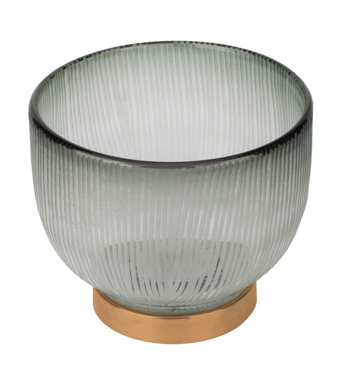 This beautiful Round Bowl with Champagne Gold Base makes an elegant presentation when used to hold fruit, foods or decorative items on a dining table, server or side table. Measures 8.5 inches in diameter x 7.5 inches high.