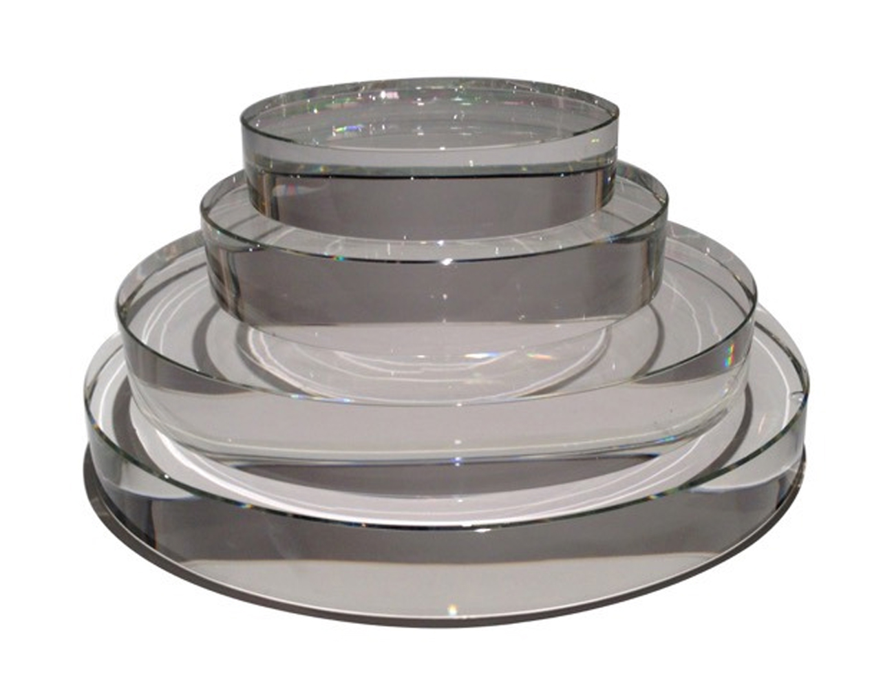 Beautiful round base of gleaming polished crystal adds flourish and style when used to hold a sculpture or any favorite object that you want to display. Adds a lovely decorative element to your home. Measures 9 inches round x 1 inch high. More sizes available.
