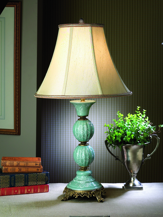 TEAL FLORAL BUFFET LAMP 27"H