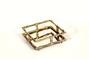 This beautiful Woven Steel Tray with Bamboo Handles looks lovely holding fruit or decorative items as a table centerpiece, or placed on a buffet or kitchen countertop. Measures 21 inches wide x 9.5 inches deep x 2.5 inches high.